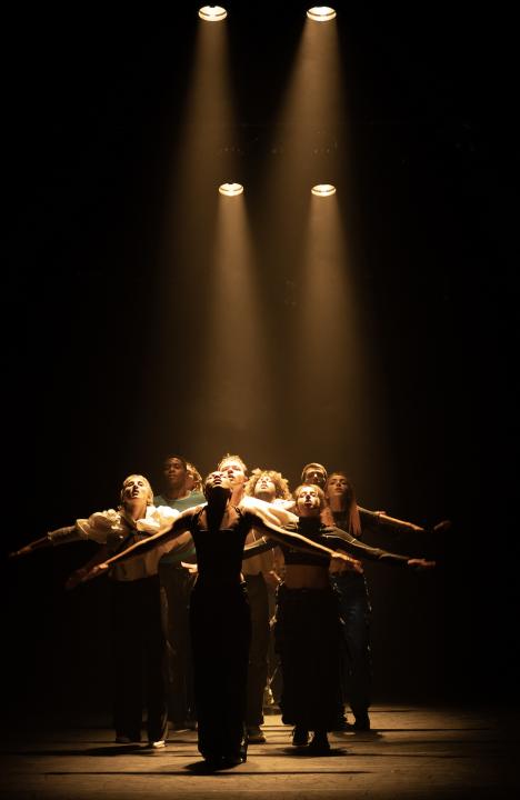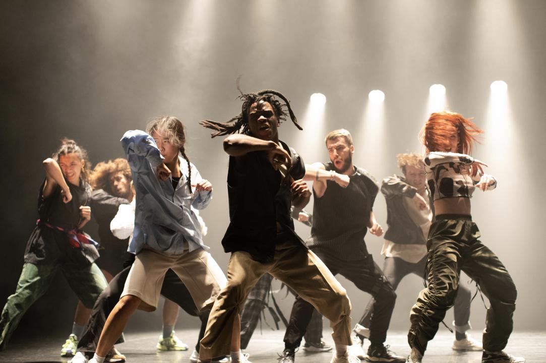 Tels sont les termes que Mazelfreten utilise pour qualifier leur travail, largement inspiré du monde des battles. Très lucide sur la surmédiatisation qui a entouré, dans les années 2000, l’émergence de la marque Tecktonik, Brandon et Laura réutilisent ici les codes et techniques de la danse électro afin de développer une écriture de groupe originale et singulière. Ils cherchent à produire un effet d’hypnose et de transe, avec une forte présence de la musique, tout en s’emparant des rapports de sociabilité institués par la danse électro, à l’ère d’internet.